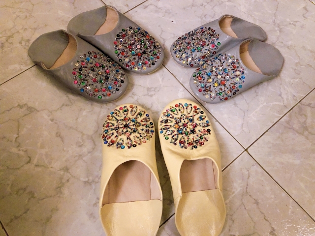モロッコの第二の都市、マラケシュで出会ったハンドメイドのバブーシュです。